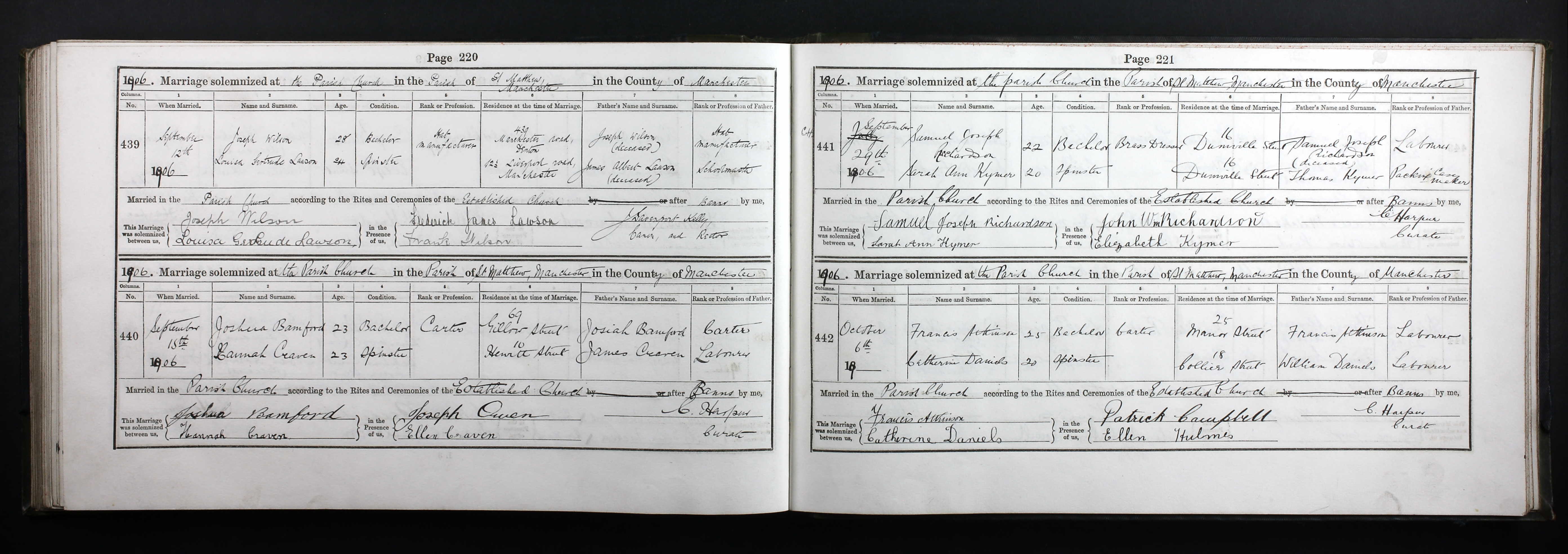 Register of Marriages 1906 - Francis Atkinson and Catherine Daniels